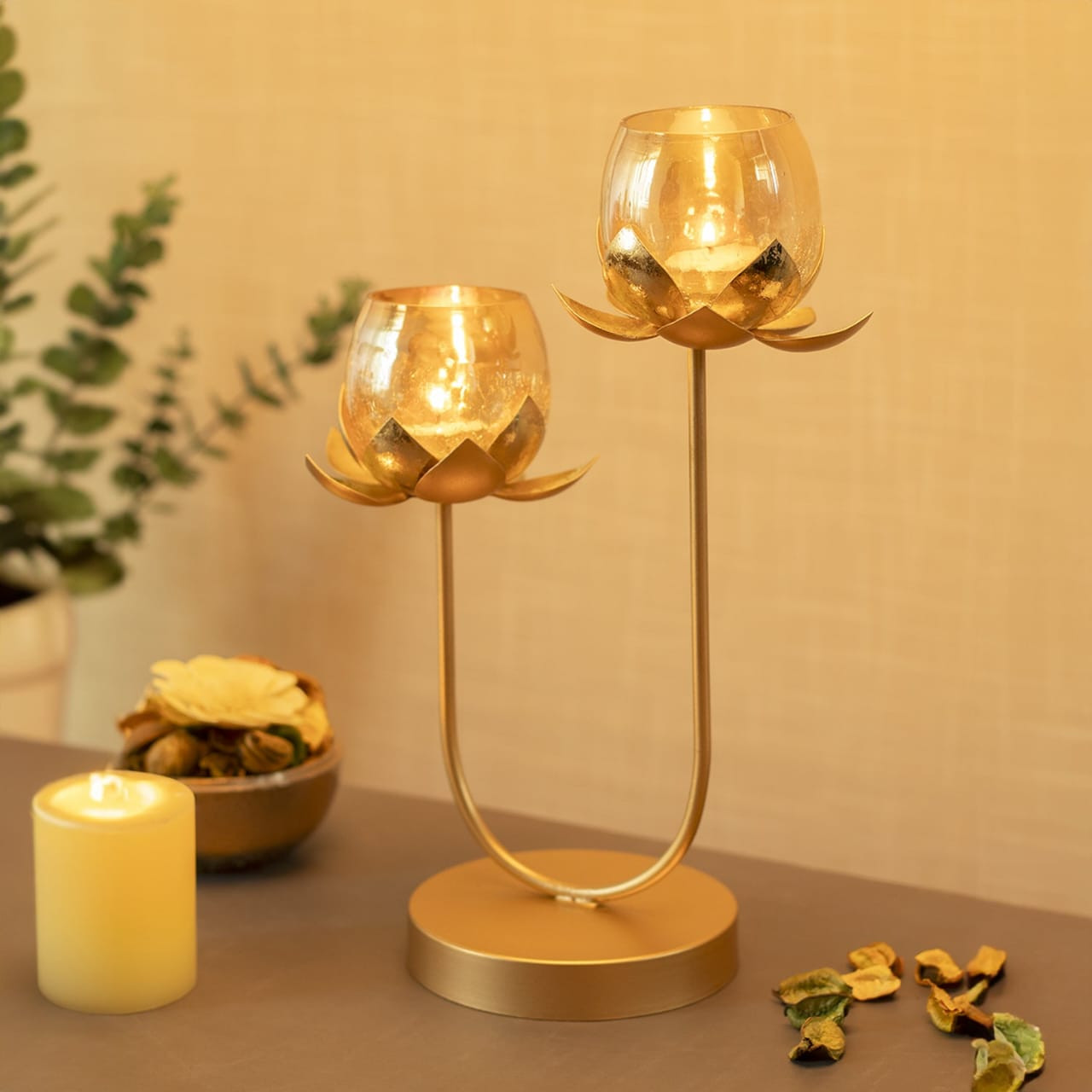 Description: Iron Lotus Mercury Votives with a gorgeous golden finish make a wonderful home décor ensemble. These votives, shaped like delicate lotus blossoms, lend elegance to any room. Place candles inside to create a magical light and color show, making them charming décor centerpieces.