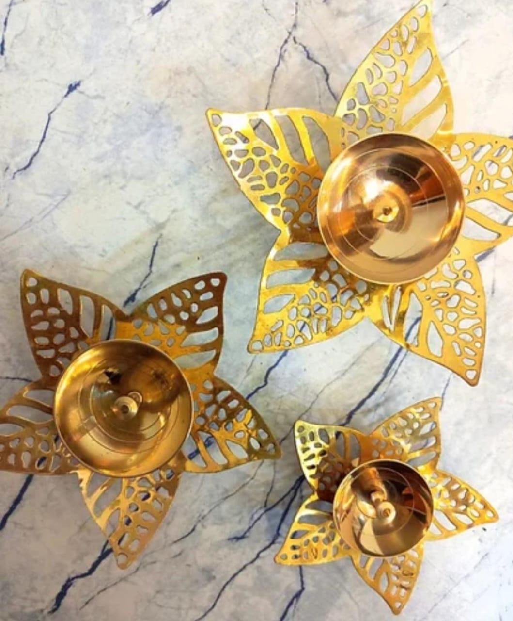 SATVIK Designer Star Shape Payali Brass Diya Traditional Decorative Diwali Diya Indian Handmade vilakku Nilavilakku Deep